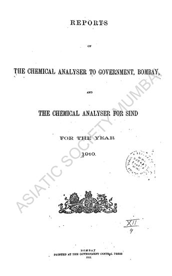 Report on the Chemical Analyser to Government, Bombay, for the Year 1910