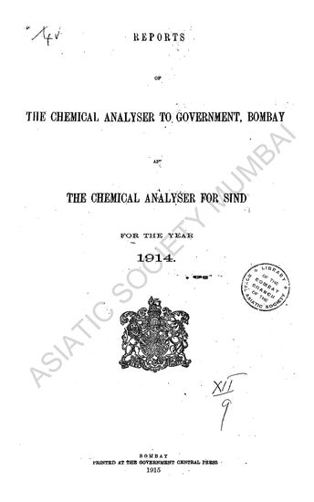 Report on the Chemical Analyser to Government, Bombay, for the Year 1914