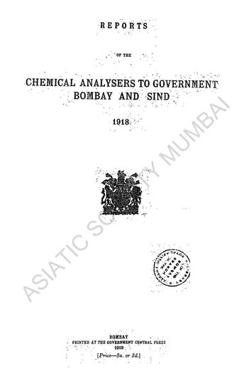 Report on the Chemical Analyser to Government, Bombay, for the Year 1918