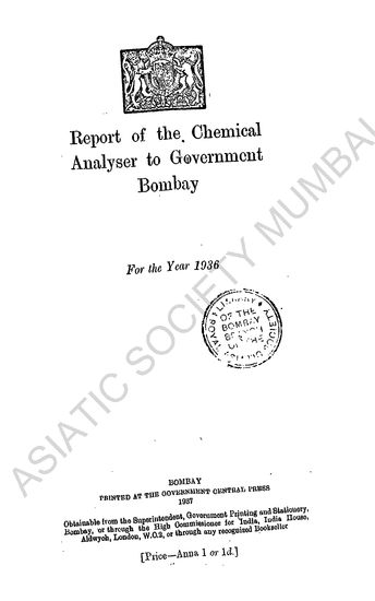 Reports of the Chemical Analysers to Government, Bombay, for the Year 1936