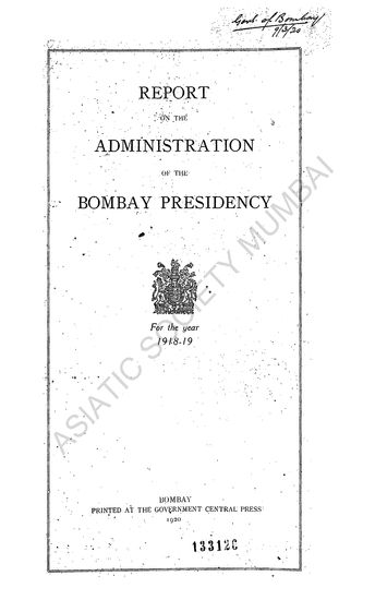 Report on the Administration of the Bombay Presidency for the Year 1918-1919