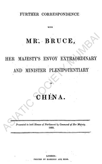 Further Correspondence with Mr. Bruce, Her Majesty's Envoy Extraordinary and Minister Plenipotentiary in China