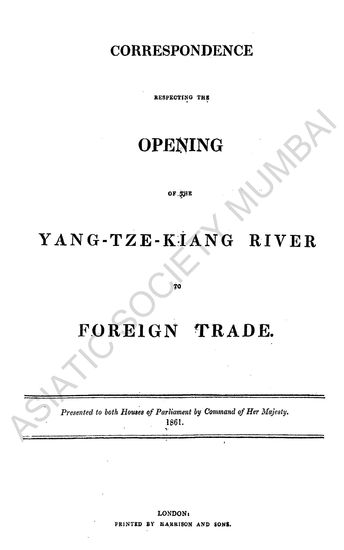 Correspondence respecting the Opening of the Yang-Tze-Kiang River to Foreign Trade