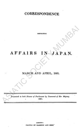 Correspondence respecting Affairs in Japan, March and April, 1861