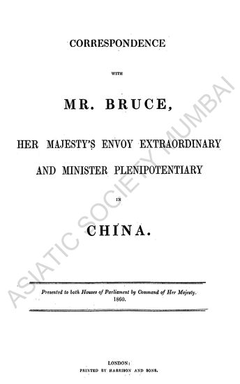 Correspondence with Mr. Bruce, Her Majesty's Envoy Extraordinary and Minister Plenipotentiary in China