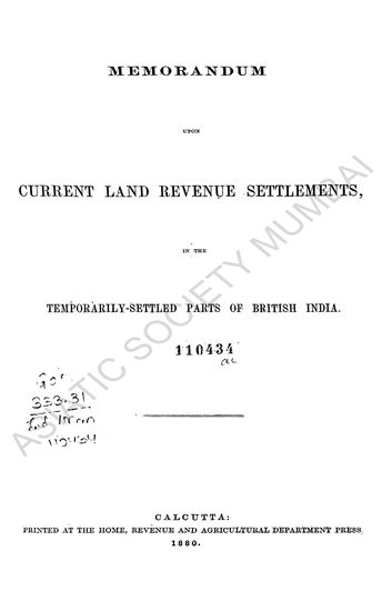 Memorandum upon Current Land Revenue Settlements, in the Temporarily-Settled Parts of British India