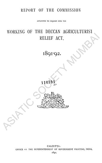 Report of the Commission appointed to Inquire into the Working of the Deccan Agriculturist Relief Act 1891-92