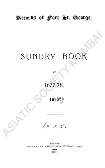 India. Madras. Madras Presidency. Fort St. George Records; Baliga, B. S.