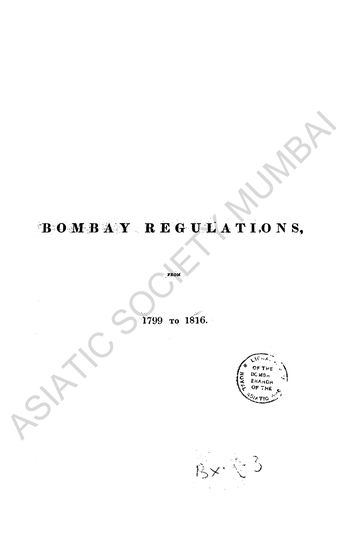 Regulations passed by the Governor in Council Bombay, from the Year 1799 to 1816 inclusive. also Police Regulations, from their commencement in the Year 1812 to 1816 inclusive