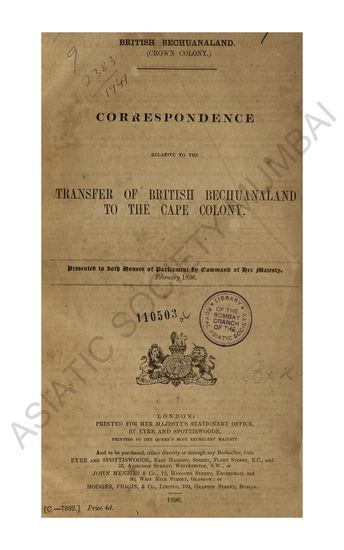 Correspondence relative to the Transfer of British Bechuanaland to the Cape Colony