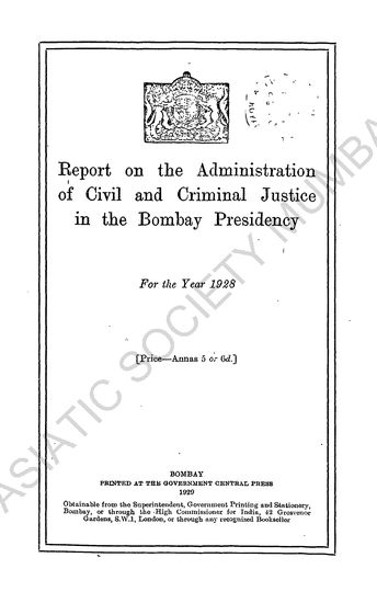 Report on the Administration of Civil and Criminal Justice in the Bombay Presidency for the Year 1928
