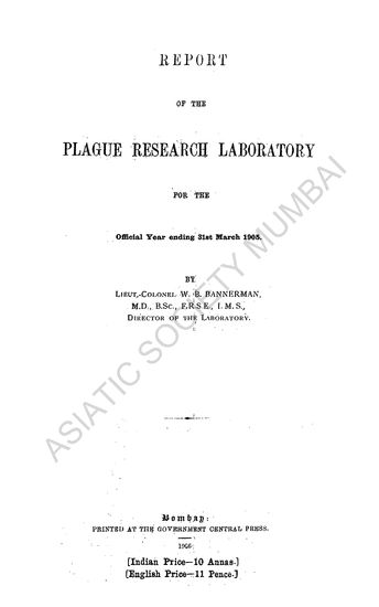 Summarised Report on the Bombay Plague Research Laboratory for the Offcial Year Ending 31st March 1905