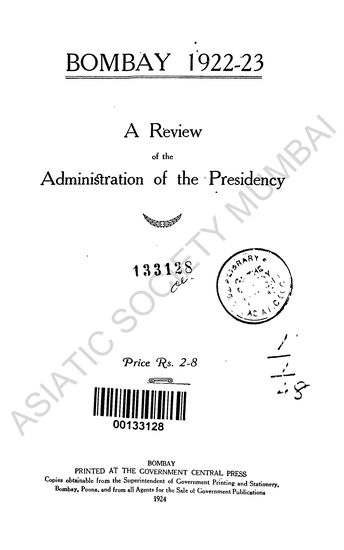 Bombay 1922-23: A Review of the Administration of the Presidency