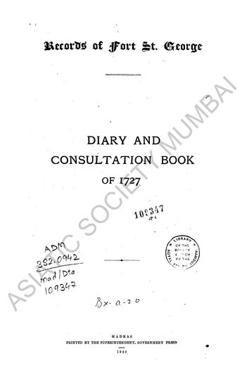Records of Fort St. George; Diary and Consultation Book of 1727, Vol. LVII