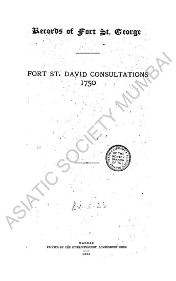 Records of Fort St. George; Fort St. David Consultations, 1750