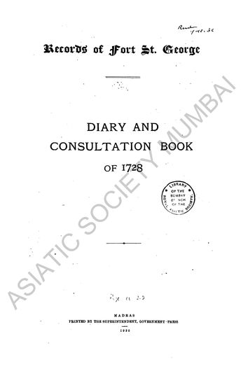 Records of Fort St. George; Diary and Consultation Book of 1728, Vol. VIII