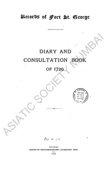 Records of Fort St. George; Diary and Consultation Book of 1729, Vol. IX