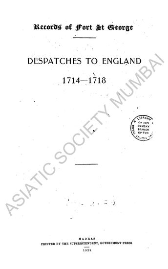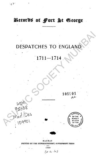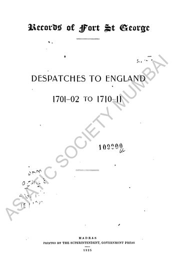 Records of Fort St. George; Despatches to England 1701-02 to 1710-11