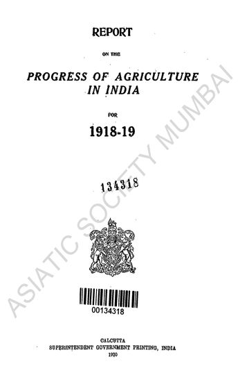 Report on the Progress of Agriculture in India, for 1918-19