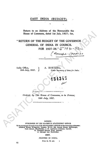 Budget of the Governor-General of India in Council for 1922-23 and Discussions thereon in the Indian Legislature (East India, Budget, 1922-23)