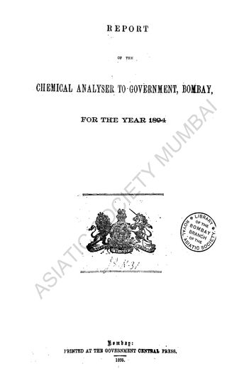 Report of the Chemical Analyser to Government, Bombay, for the Year 1894