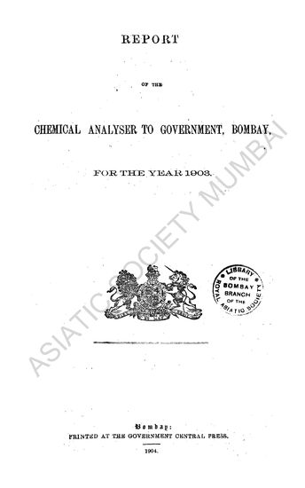 Report on the Chemical Analyser to Government, Bombay, for the Year 1903
