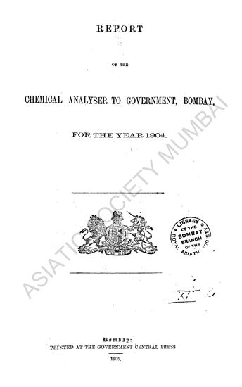 Report on the Chemical Analyser to Government, Bombay, for the Year 1904