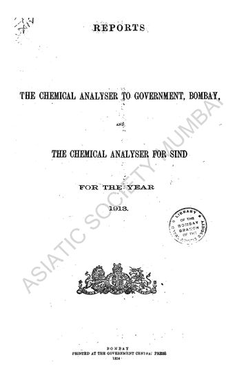 Report on the Chemical Analyser to Government, Bombay, for the Year 1913