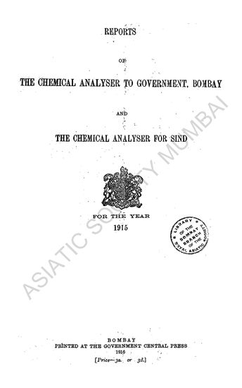 Report on the Chemical Analyser to Government, Bombay, for the Year 1915