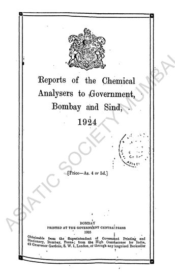 Reports of the Chemical Analysers to Government, Bombay, for the Year 1924