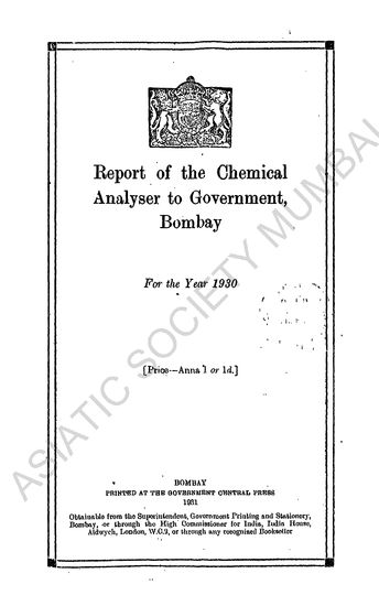 Reports of the Chemical Analysers to Government, Bombay, for the Year 1930