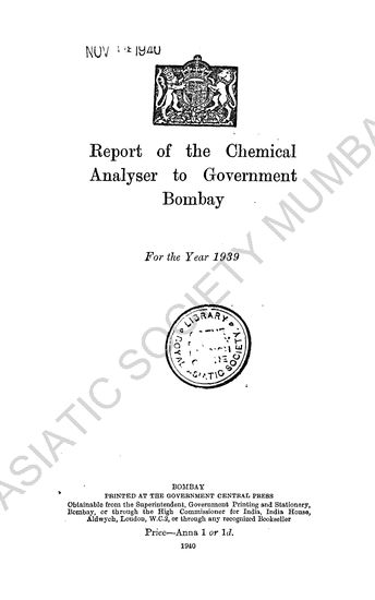 Reports of the Chemical Analysers to Government, Bombay, for the Year 1939