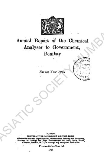 Reports of the Chemical Analysers to Government, Bombay, for the Year 1941