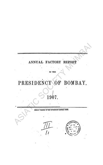 Annual Factory Report of the Presidency of Bombay for the Years 1907