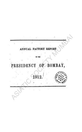 Annual Factory Report of the Presidency of Bombay for the Years 1912