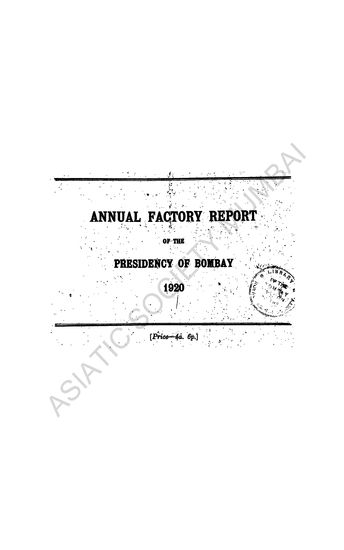 Annual Factory Report of the Presidency of Bombay for t ...