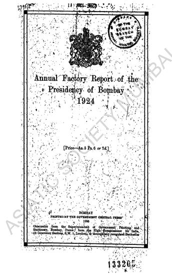 Annual Factory Report of the Presidency of Bombay for the Years 1924