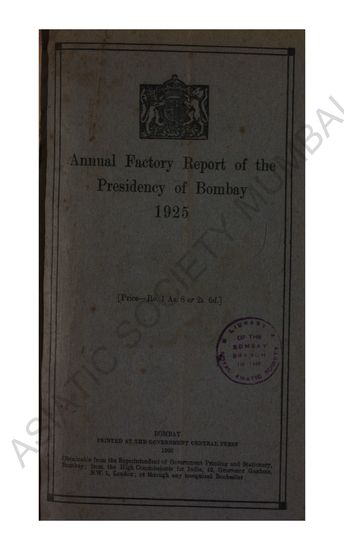 Annual Factory Report of the Presidency of Bombay for the Years 1925