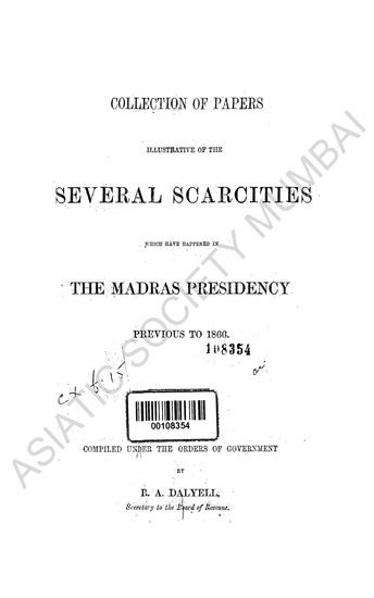 Collection of Papers illustrative of the Several Scarcities which have happened in the Madras Presidency previous to 1866