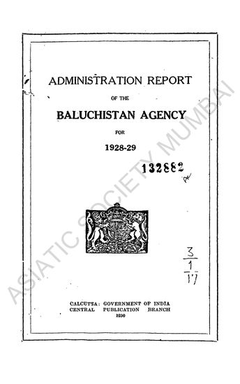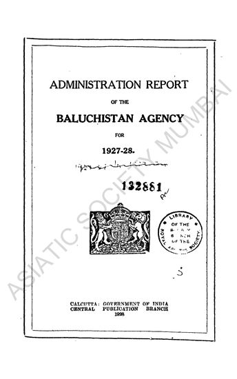 Administration Report of the Baluchistan Agency, for 1899-1900 (Selections from the Records of the Government of India, Foreign Department No. CCCLXXX.,, foreign Department Serial No. 116) to 1904-05 (bounded together)