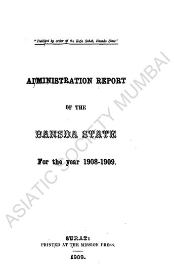 Administration Report of the Bansda State, for the year 1908-09