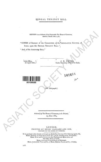 Report on the Bengal Tenancy Bill, 1884