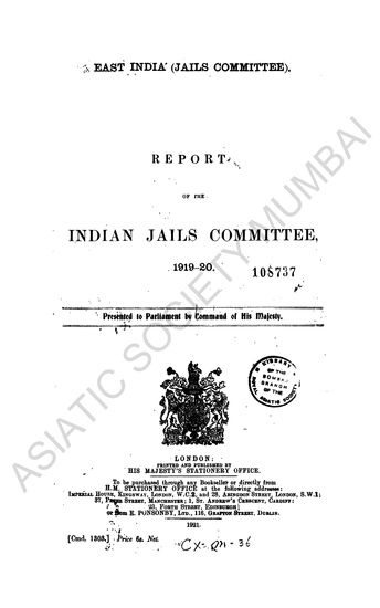 Report of the Indian Jails Committee, 1919-20