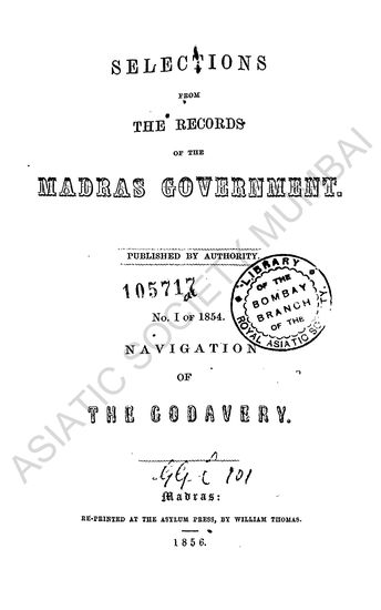 Navigation of the Godavery (Selections from the Records of the Madras Government, No. I of 1854)