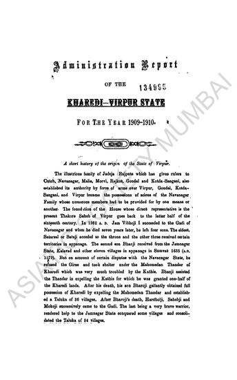Administration Report of the Kharedi-Virpur State, for the year 1909-10