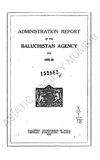 Administration Report of the Baluchistan Agency, for the year 1st April 1933 to 31st March 1934