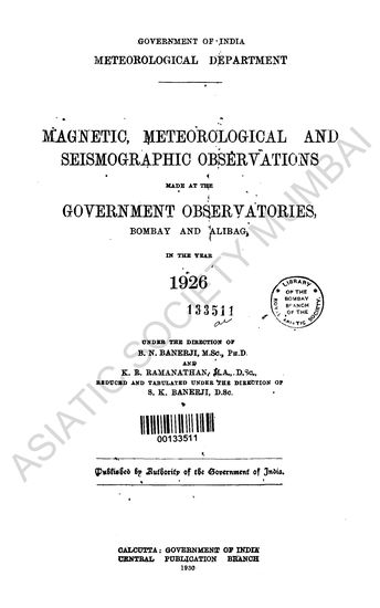 Magnetic, Meteorological and Seismographic Observations made at the Government Observatories, Bombay and Alibag in the year 1926