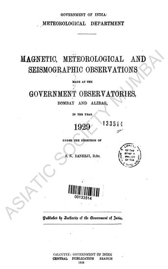 Magnetic, Meteorological and Seismographic Observations made at the Government Observatories, Bombay and Alibag in the year 1929