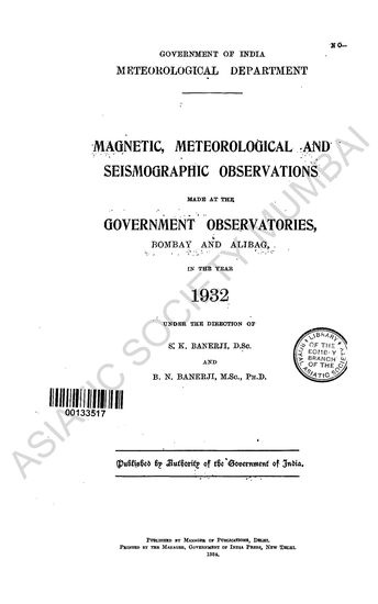 Magnetic, Meteorological and Seismographic Observations made at the Government Observatories, Bombay and Alibag in the year 1932