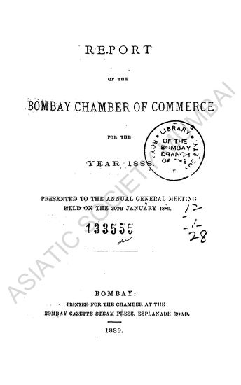 Report on the Bombay Chamber of Commerce, for the year 1888